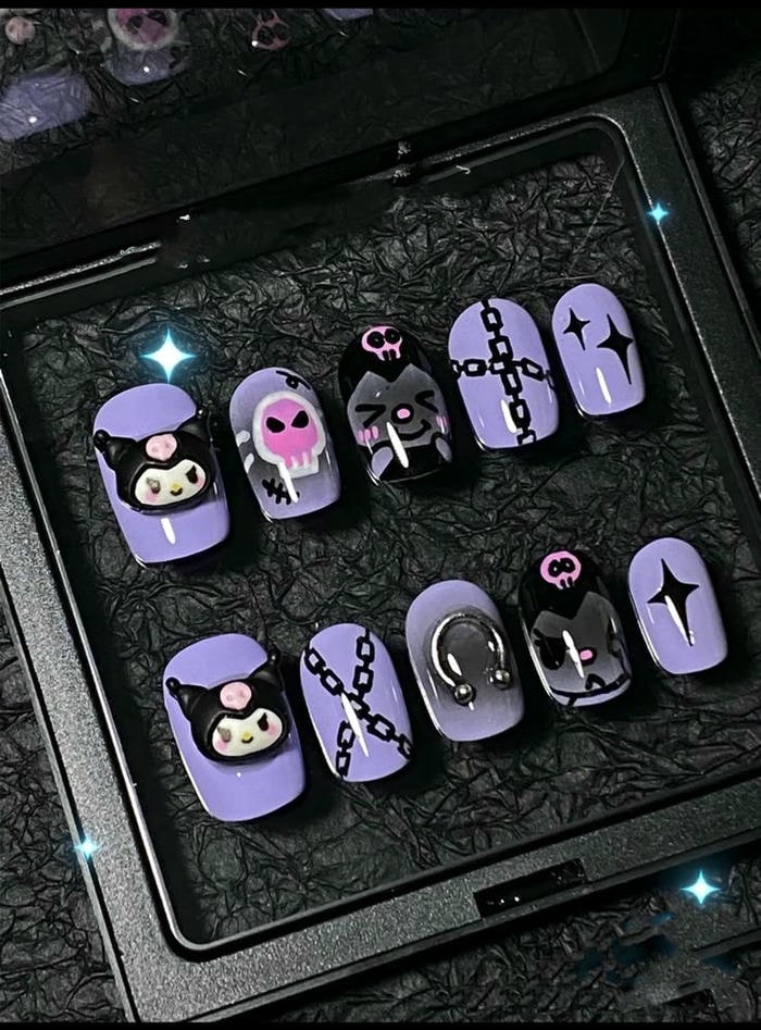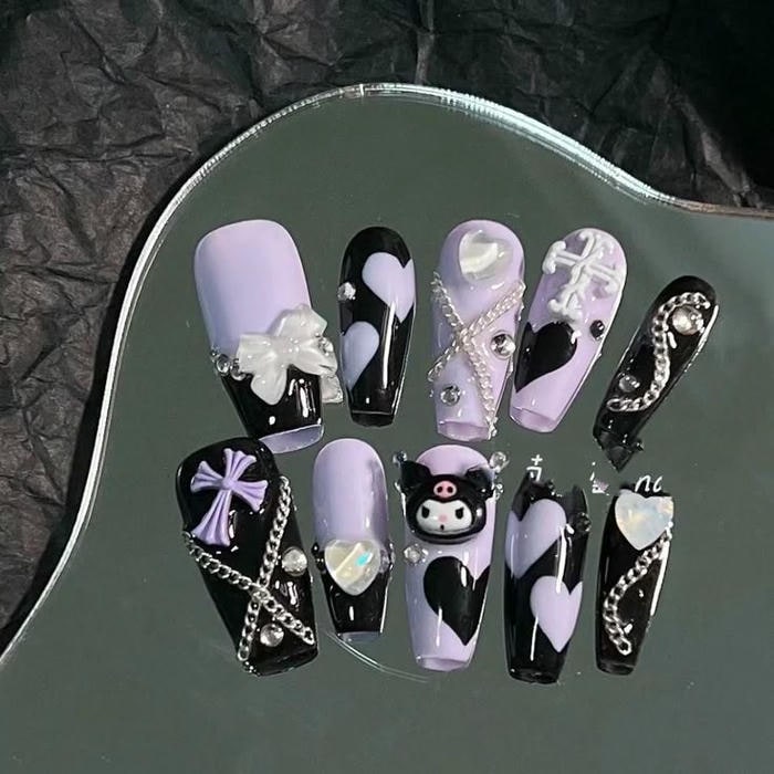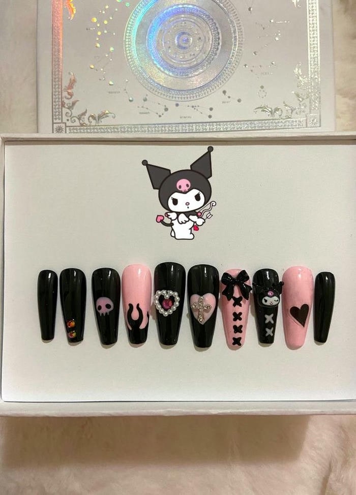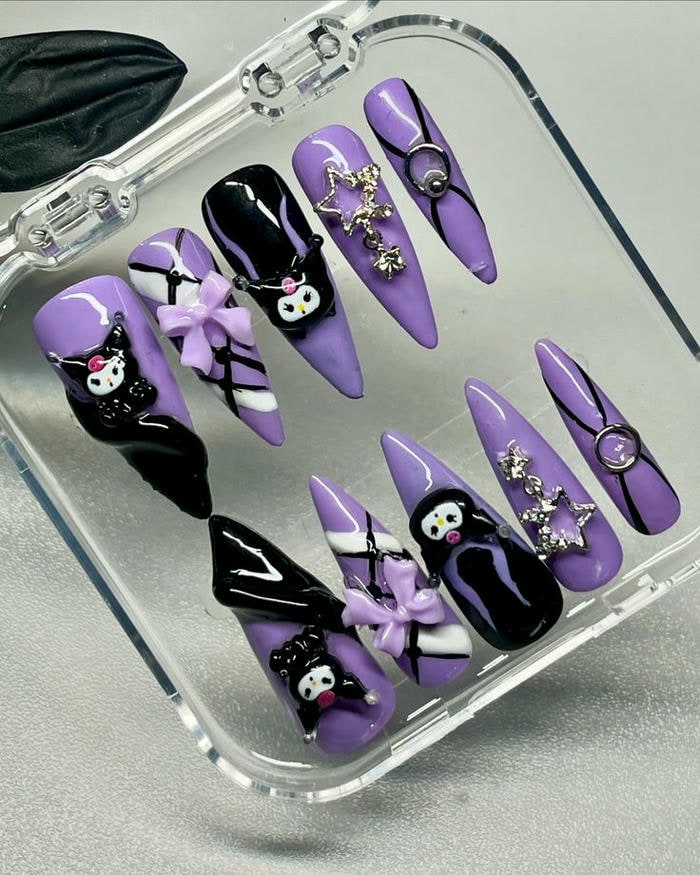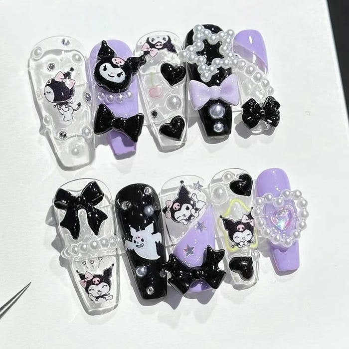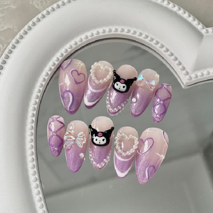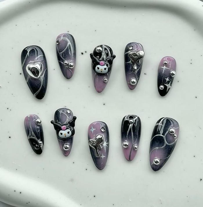 Mẫu nail Kuromi dễ thương là lựa chọn hoàn hảo để bạn thể hiện cá tính và phong cách trẻ trung, nổi bật. Hãy chọn ngay thiết kế yêu thích để làm mới diện mạo và tỏa sáng theo xu hướng nail hot nhất năm 2025 nhé!