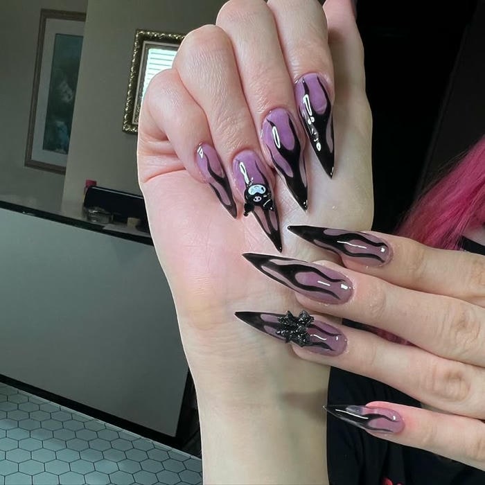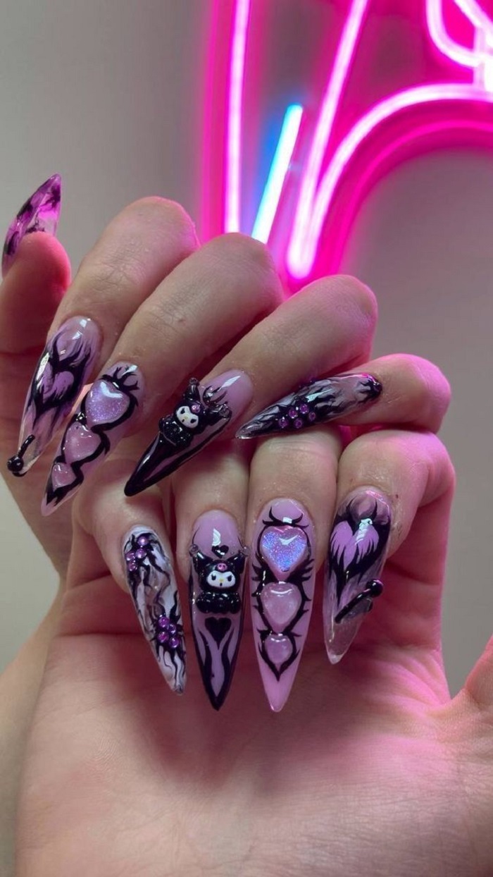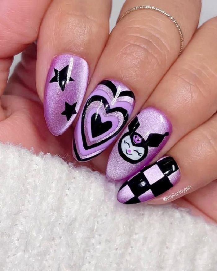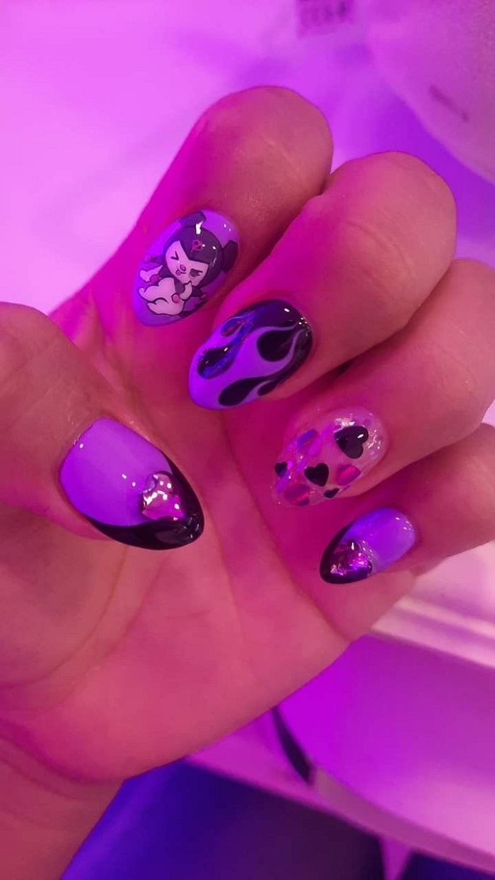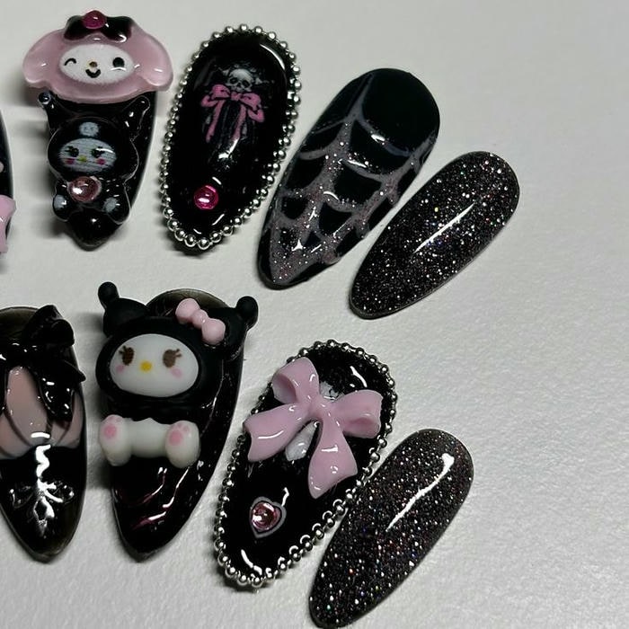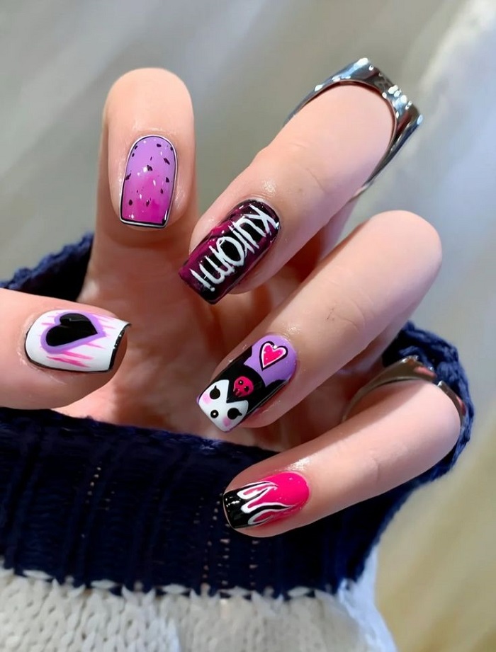 Mẫu nail Kuromi dễ thương là lựa chọn hoàn hảo để bạn thể hiện cá tính và phong cách trẻ trung, nổi bật. Hãy chọn ngay thiết kế yêu thích để làm mới diện mạo và tỏa sáng theo xu hướng nail hot nhất năm 2025 nhé!